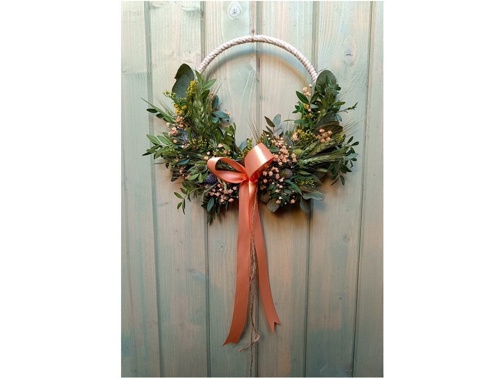 K dispozici bude velký výběr sušených i čerstvých květin, které následně ve věnci přirozeně uschnou.